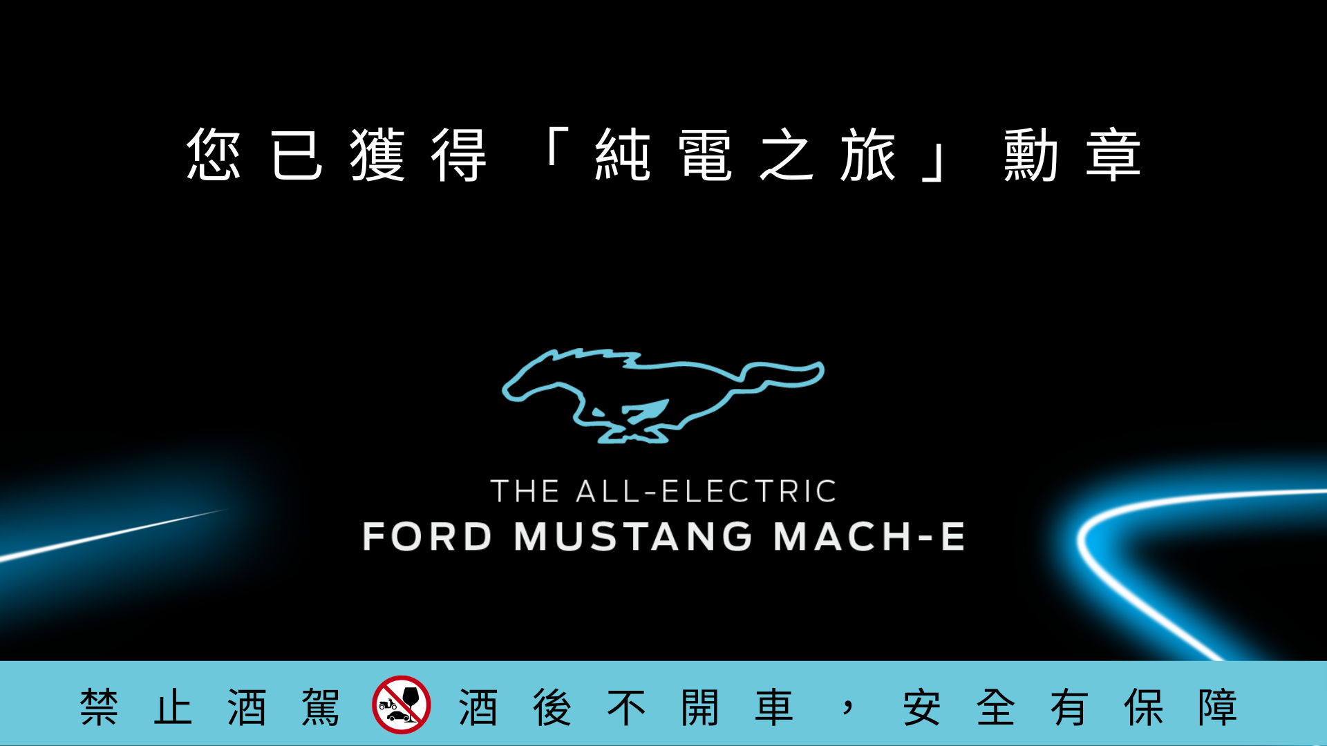 持有勳章,可領取「Mustang Mach-E」限量*調酒貴賓券 100 元 以及「Mustang Mach-E」限定桌布! 合作酒吧: 台北 Indulge Bistro 台中 Tipsy Room 台南 The Han-Jia Pairing Dinner * 每店限量可兌換 160 位,換完為止
